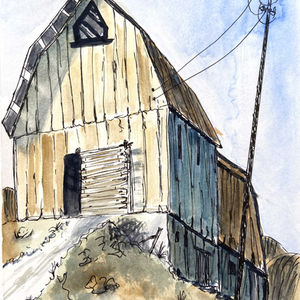 More pen and ink work with various washes. Perched on hill, with an amazing view.